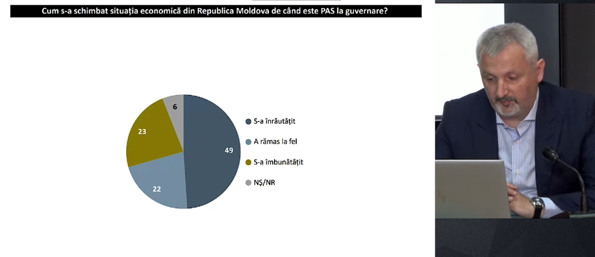 Întrebați cum s-a schimbat situația economică în Republica Moldova de când PAS a preluat guvernarea, 22 la sută au răspuns că nimic nu s-a schimbat, în timp ce 49 la sută consideră că situația s-a înrăutățit. Pentru 23 la sută situația s-a îmbunătățit.