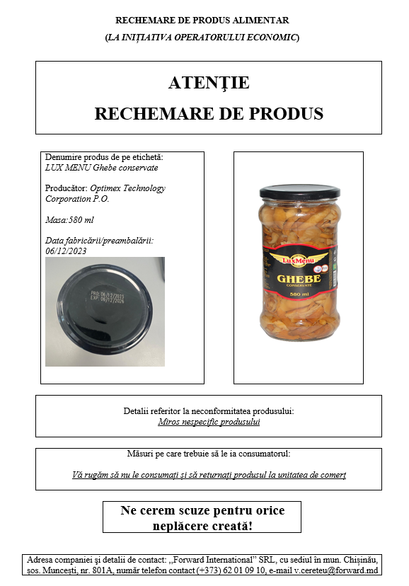 ATENȚIE! Produs rechemat de pe rafturile magazinelor