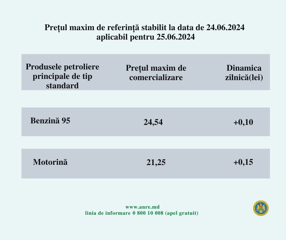 Agenția Națională pentru Reglementare în Energetică a anunțat prețurile la carburanți pentru marți, 25 iunie.