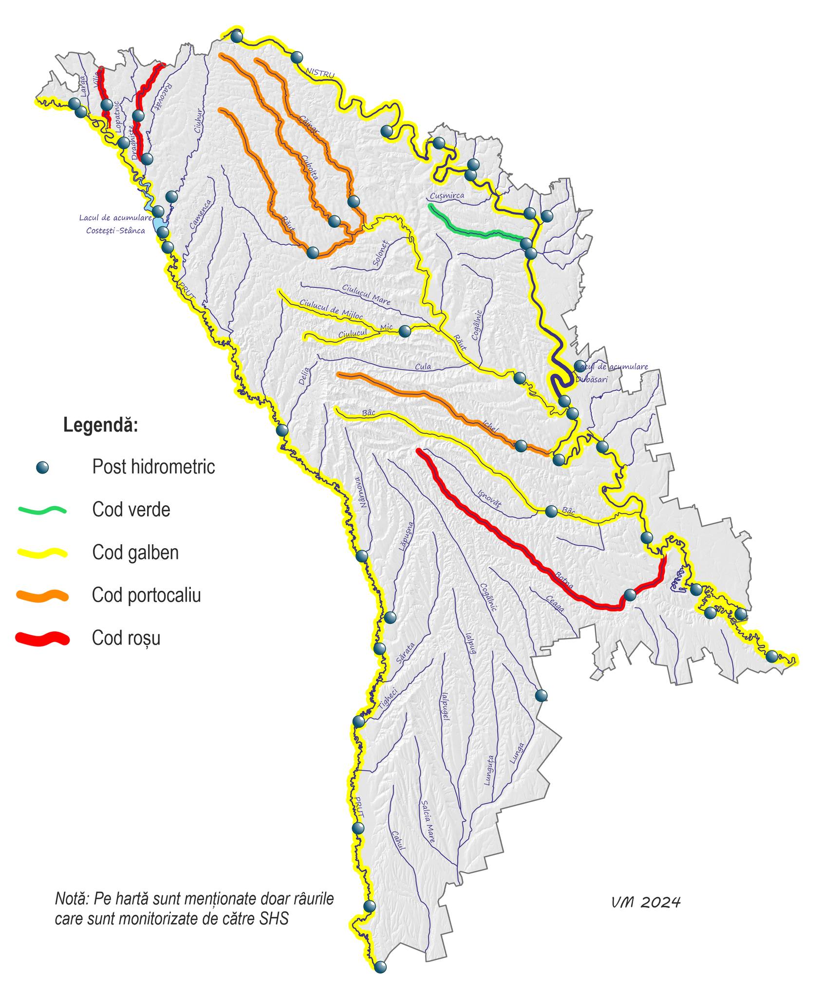 Un nou cod galben! Serviciul Hidrometeorologic de Stat avertizează că în perioada 25 iunie - 2 iulie în râul Nistru, Prut și râurile mici se va menține scurgerea redusă a apei. În acest context, specialiștii îi îndeamnă pe cetățeni să consume rațional resursele de apă.