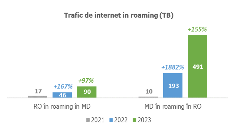 Conform raportului comun ANRCETI-ANCOM, s-au înregistrat 6 milioane de zile de roaming activ, cu o creștere de 33% față de anul precedent. Consumul de internet în roaming a crescut masiv, cu 155% pentru utilizatorii din Republica Moldova și cu 97% pentru cei din România.