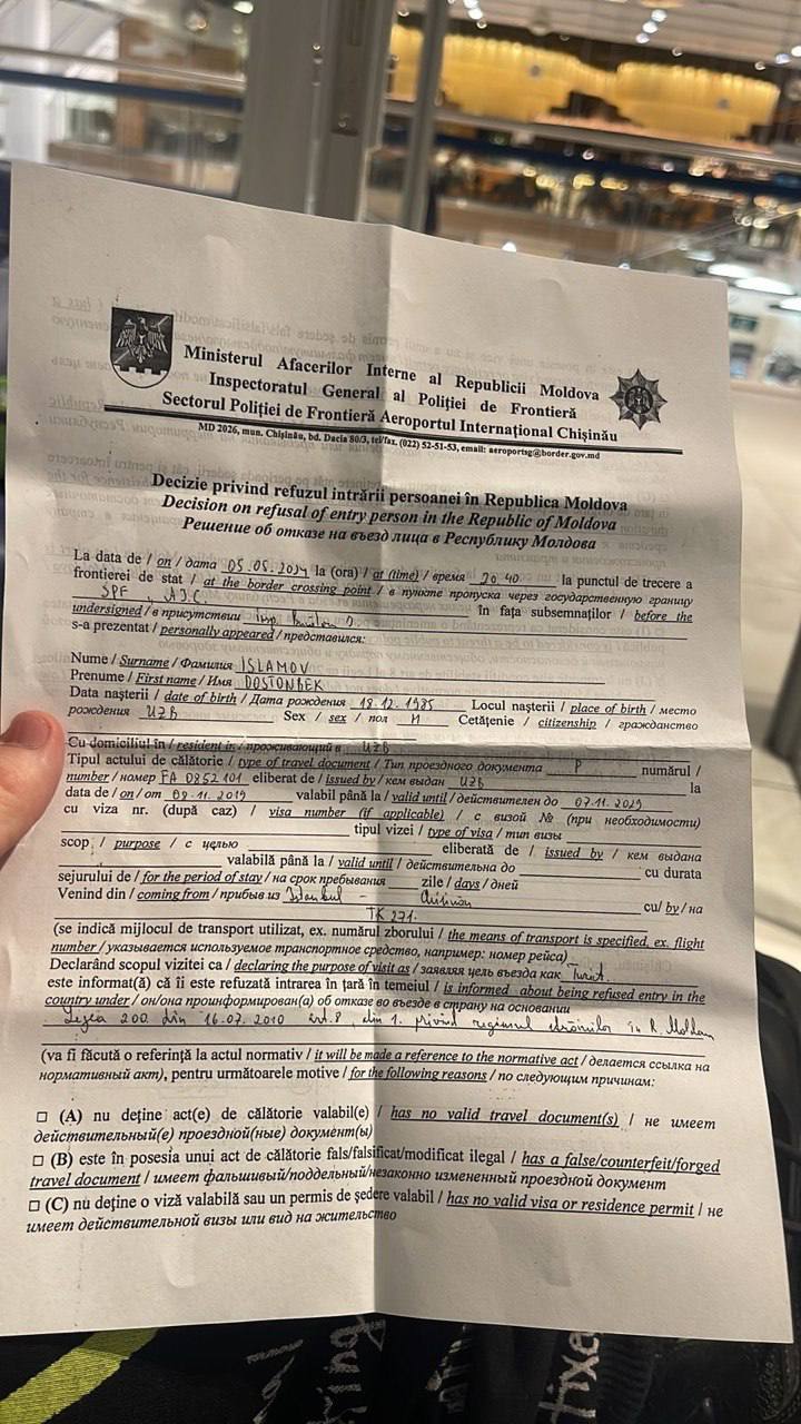 Mai mult, pe canalele de Telegram a fost publicat un document emis de autoritățile țării noastre, în care este menționată decizia de refuz.