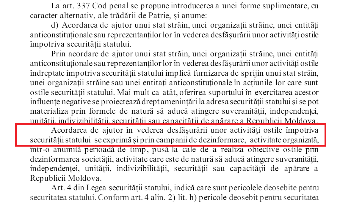 ”Eu nu cred că dezinformarea își are locul în articolul ”trădarea de Patrie”, a mai precizat Stamate.
