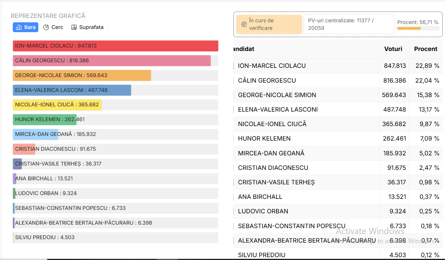 Autoritatea electorală din România a publicat primele rezultate parțiale oficiale ale alegerilor prezidențiale din 24 noiembrie. Astfel, pe primul loc se află candidatul PSD Marcel Ciolacu, urmat de Călin Georgescu, Eelena Lasconi și George Simion. 14 candidați au fost pe buletinele de vot.