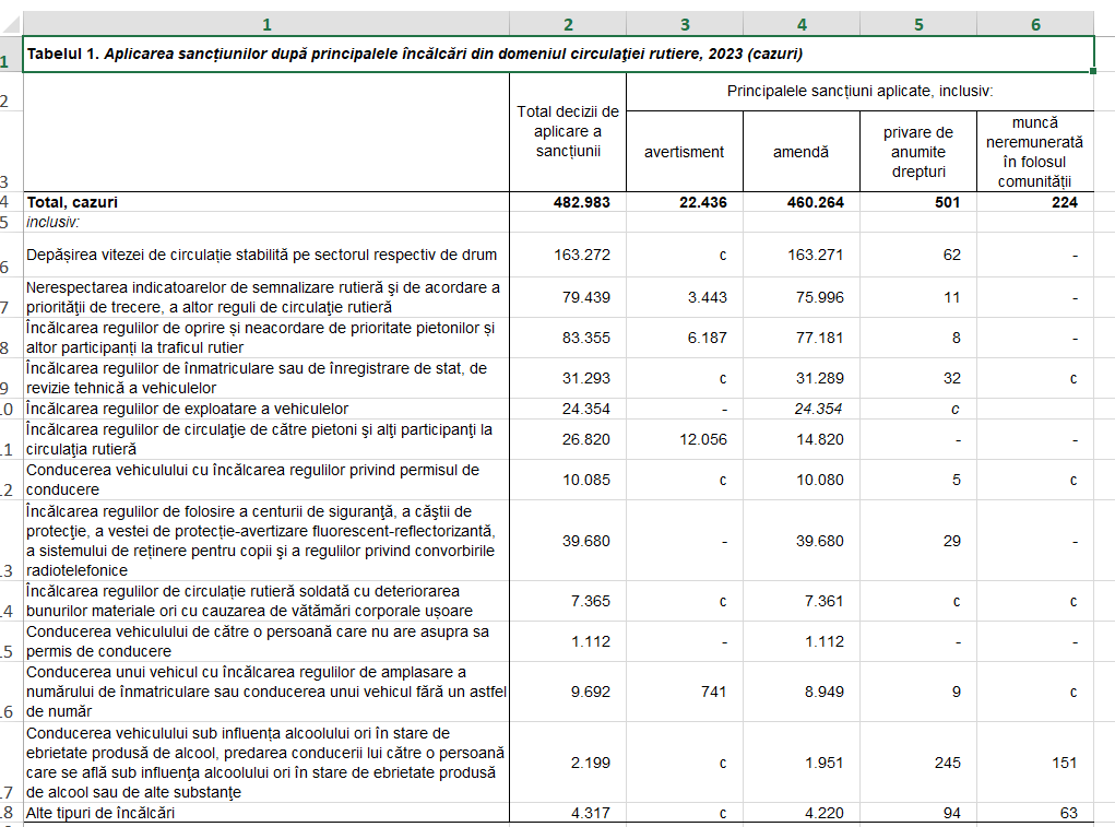 Pe parcursul anului 2023, au fost constatate 518,8 mii de contravenții în domeniul circulației rutiere sau cu 8,2% mai mult comparativ cu anul 2022.