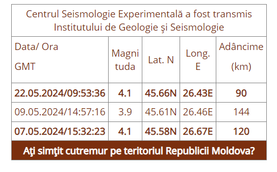 Și Institutul de Geologie si Seismologie din Republica Moldova a anunțat pe pagina sa despre acest cutremur.