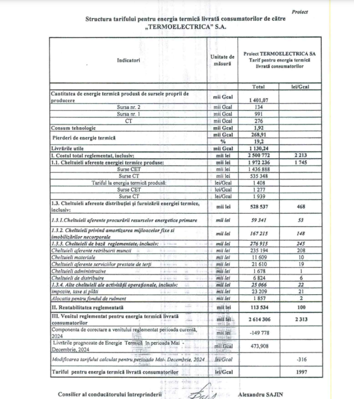 Astfel, Termoelectrica solicită un tarif de 1997 lei/Gcal, față de 2138 lei/Gcal, cât este în prezent, fără TVA.