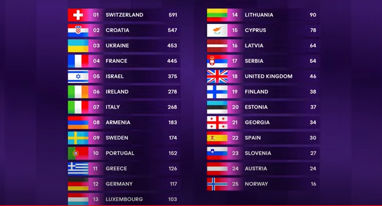 Pe locul doi s-a plasat Croația, cu 547 de puncte, iar pe locul trei - Ucraina cu 453 de puncte.